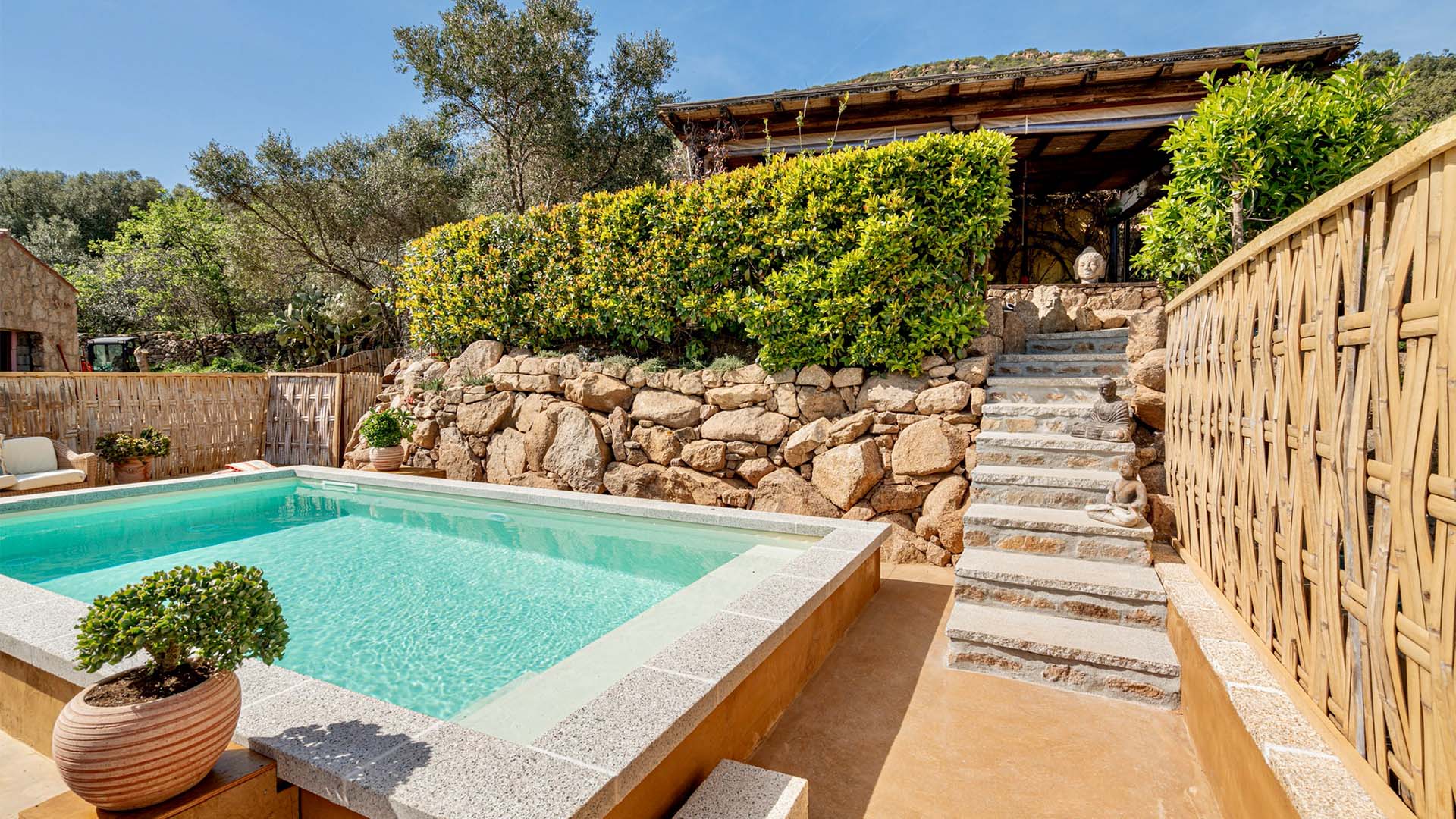 - nachhaltige Bauart mit Holz und sardischem Stein